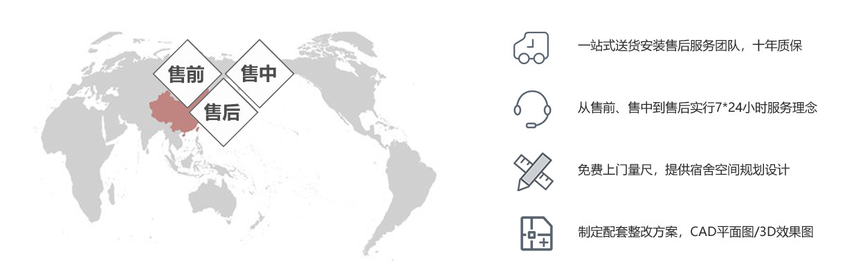 省心多年豐富的宿舍家具行業經驗,完善的售后服務,讓您后顧無憂!